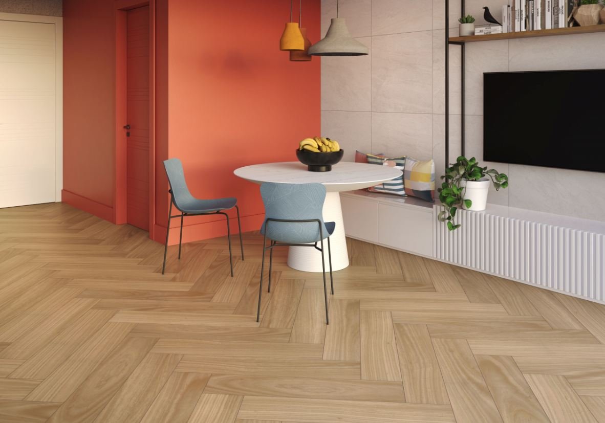 Itajai Cerejeira desperta sensações de leveza e acolhimento. O tom caramelizado, inspirado nas texturas madeira, garante um design singular, possibilitando criações únicas para pisos e paredes.